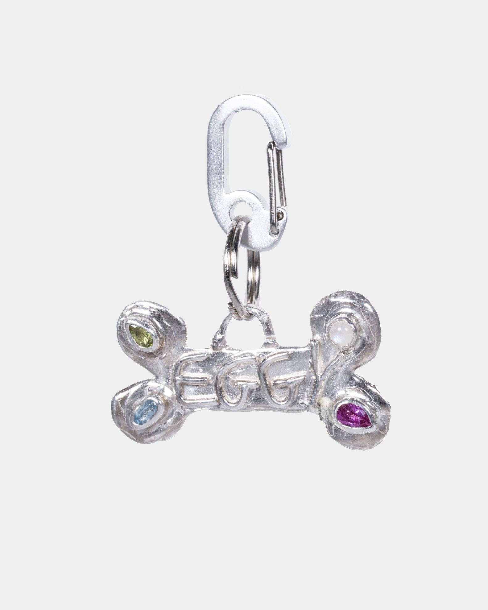The Bedazzled Bone tag is made in solid white brass and set with: