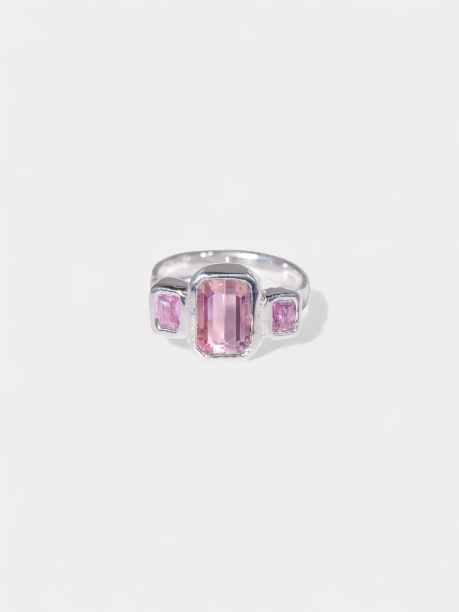 ~ two 3.5x2.5mm emerald cut pink sapphires