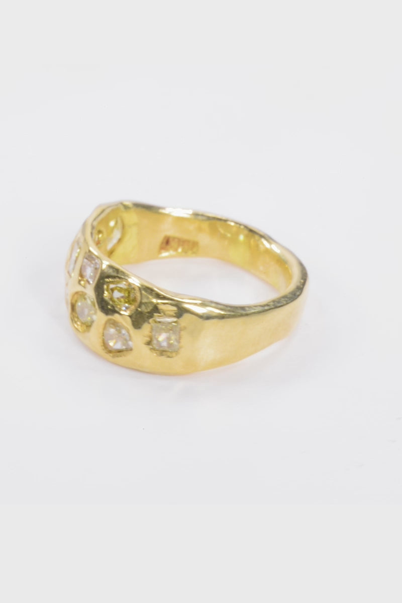 This Savage Diamond piece is set in solid 18 karat yellow gold, with natural: