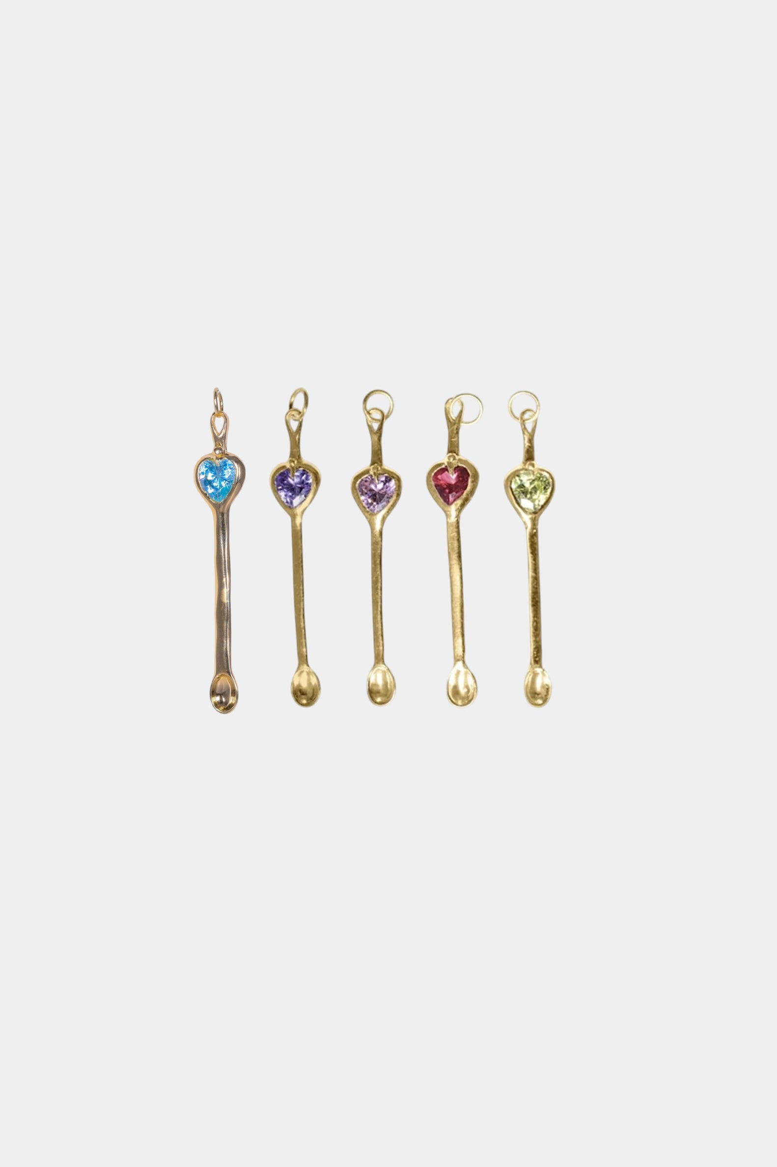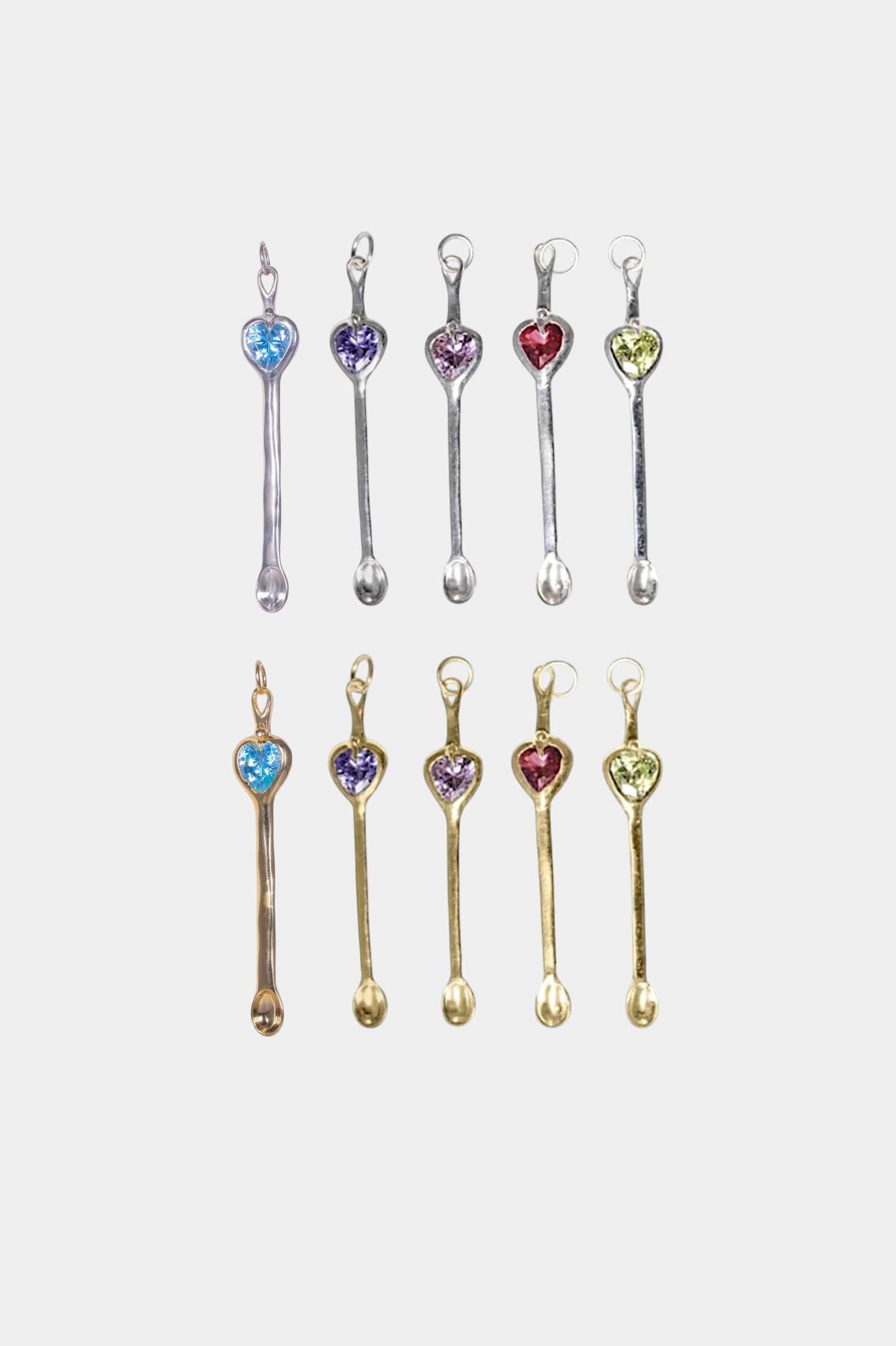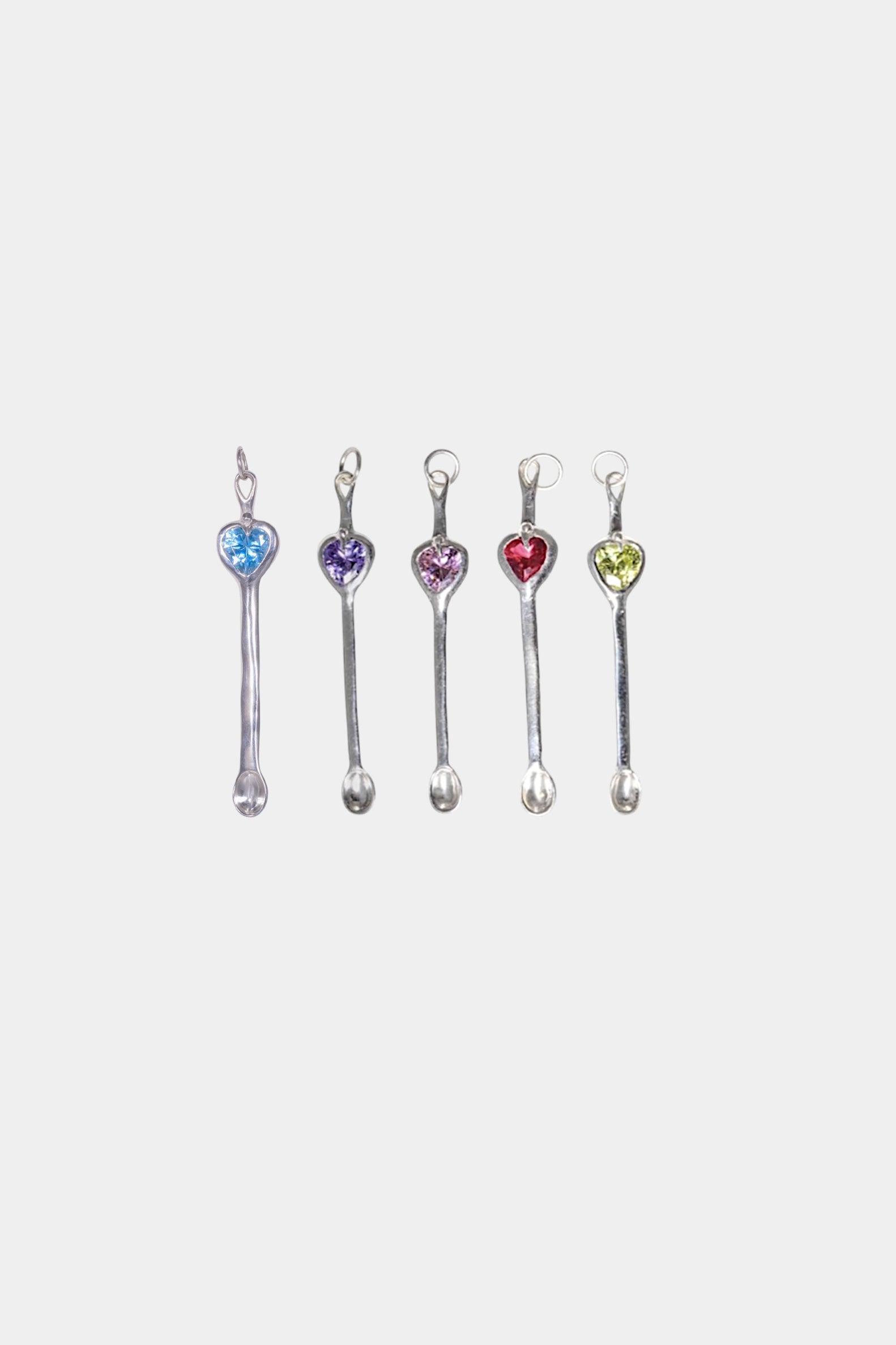 These spoons are made with your choice of coloured CZ heart set in sterling silver. One of each colour available.