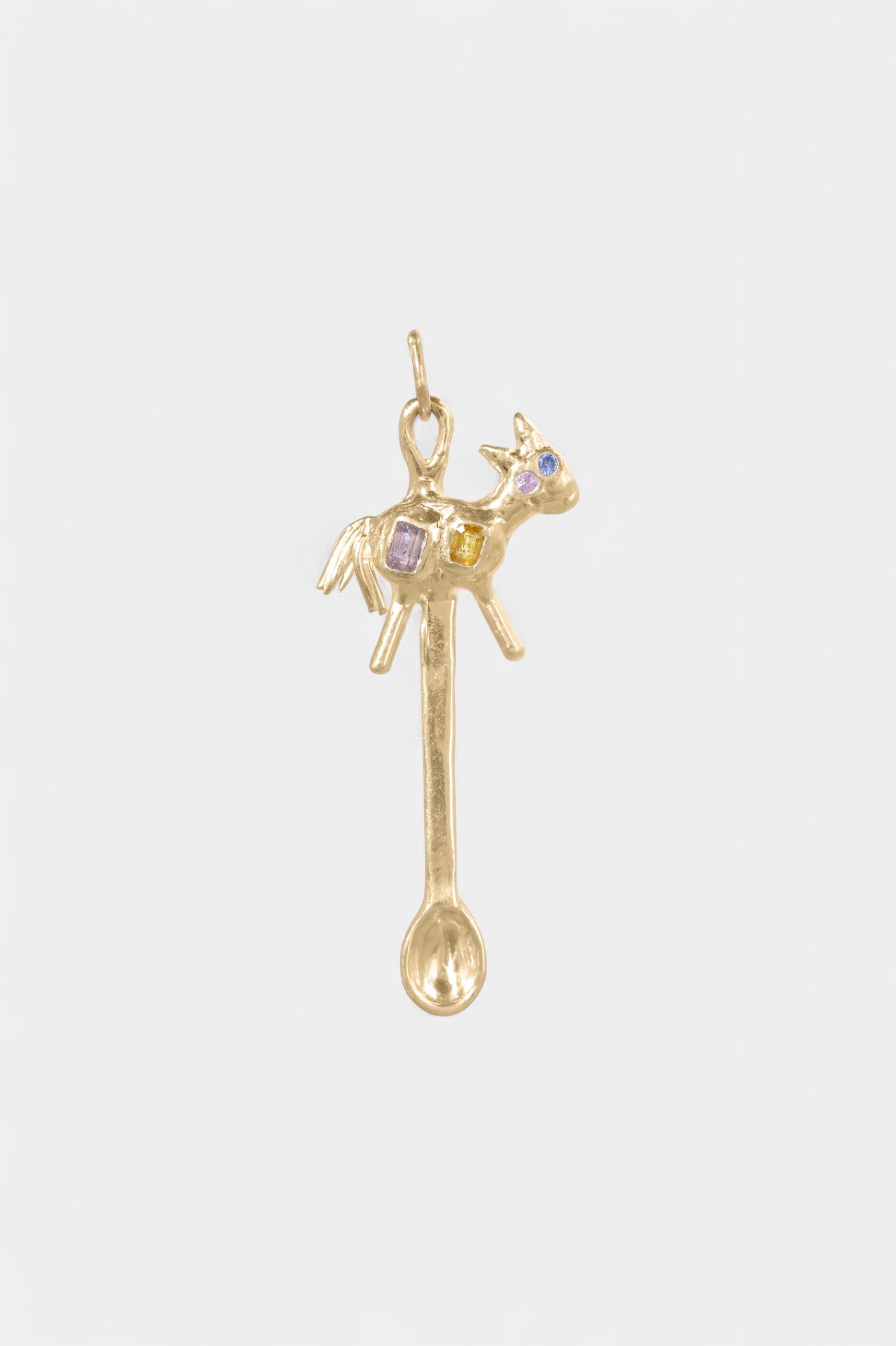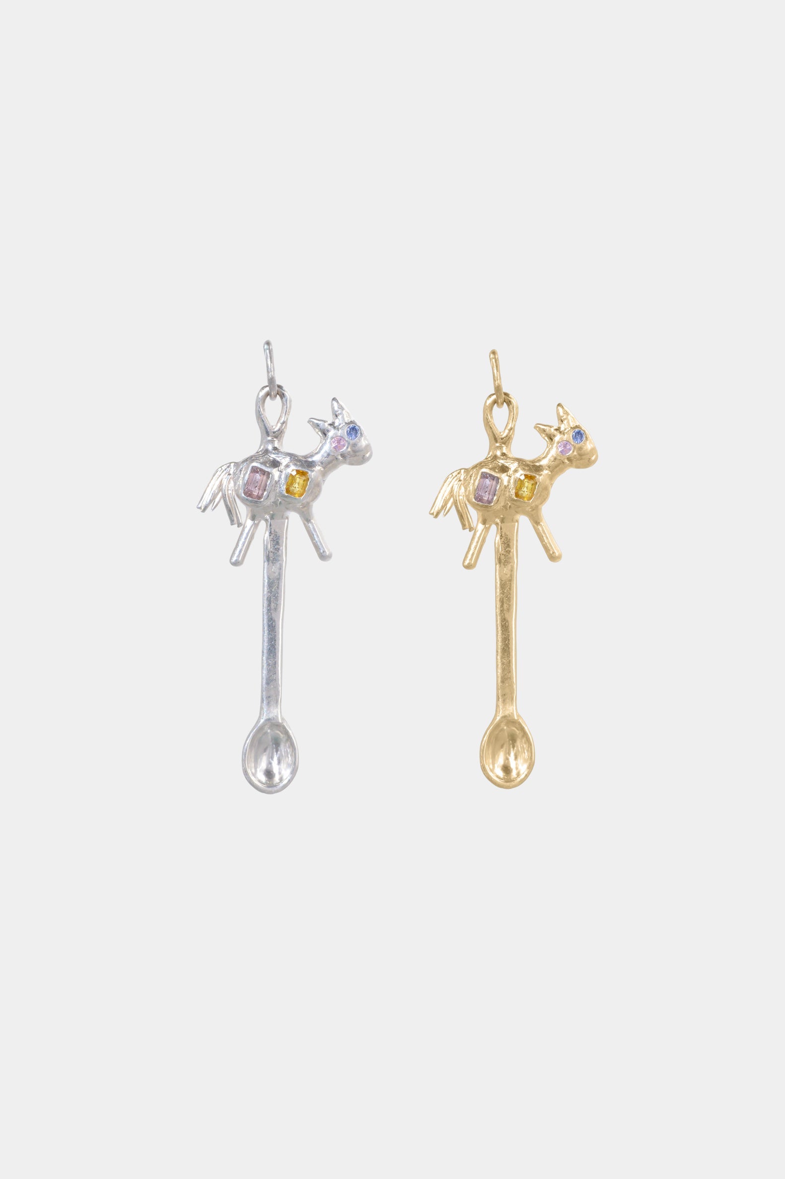 The Neigh, Yay Spoon is available in your choice of sterling silver or an 18k yellow gold vermeil and set with: