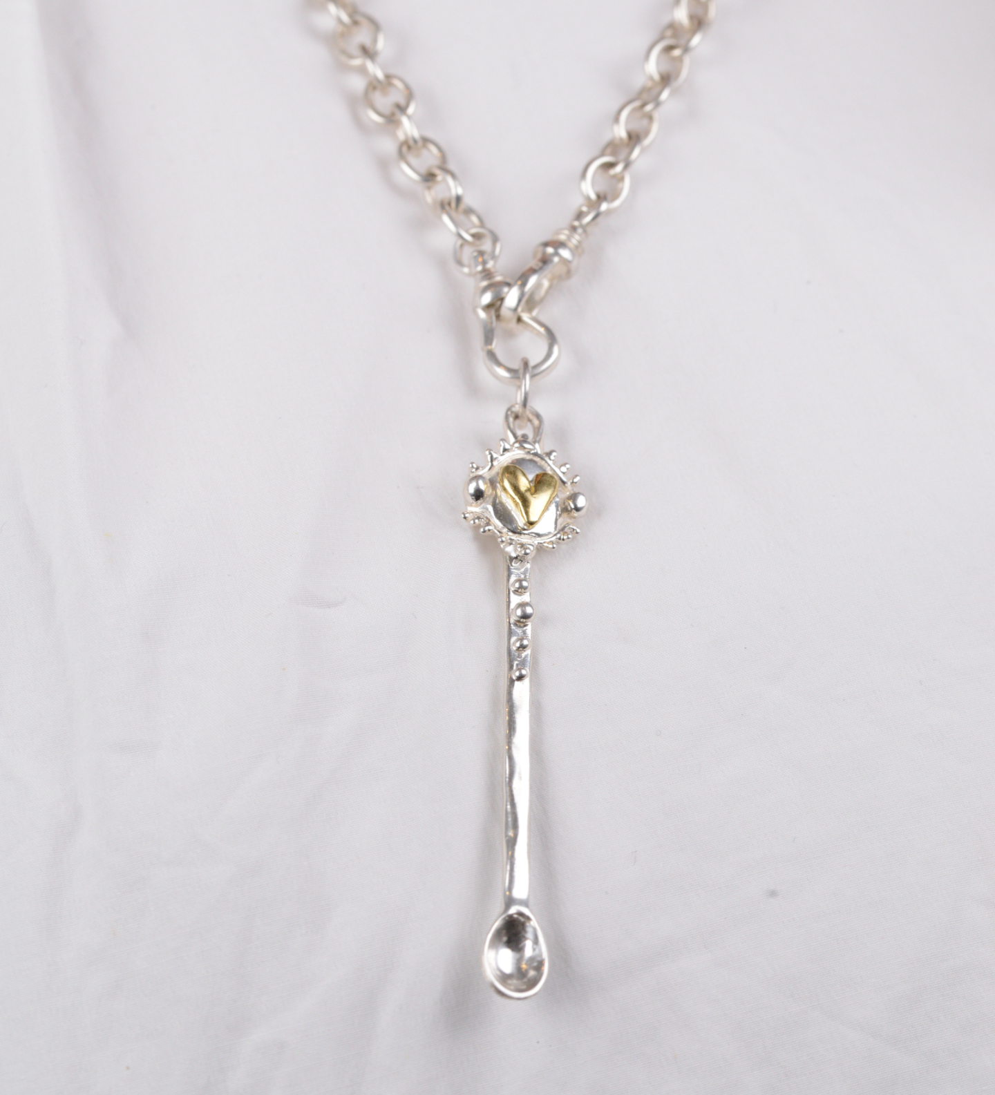 The Sealed with Spoon is available in solid sterling silver with a brass heart motif.