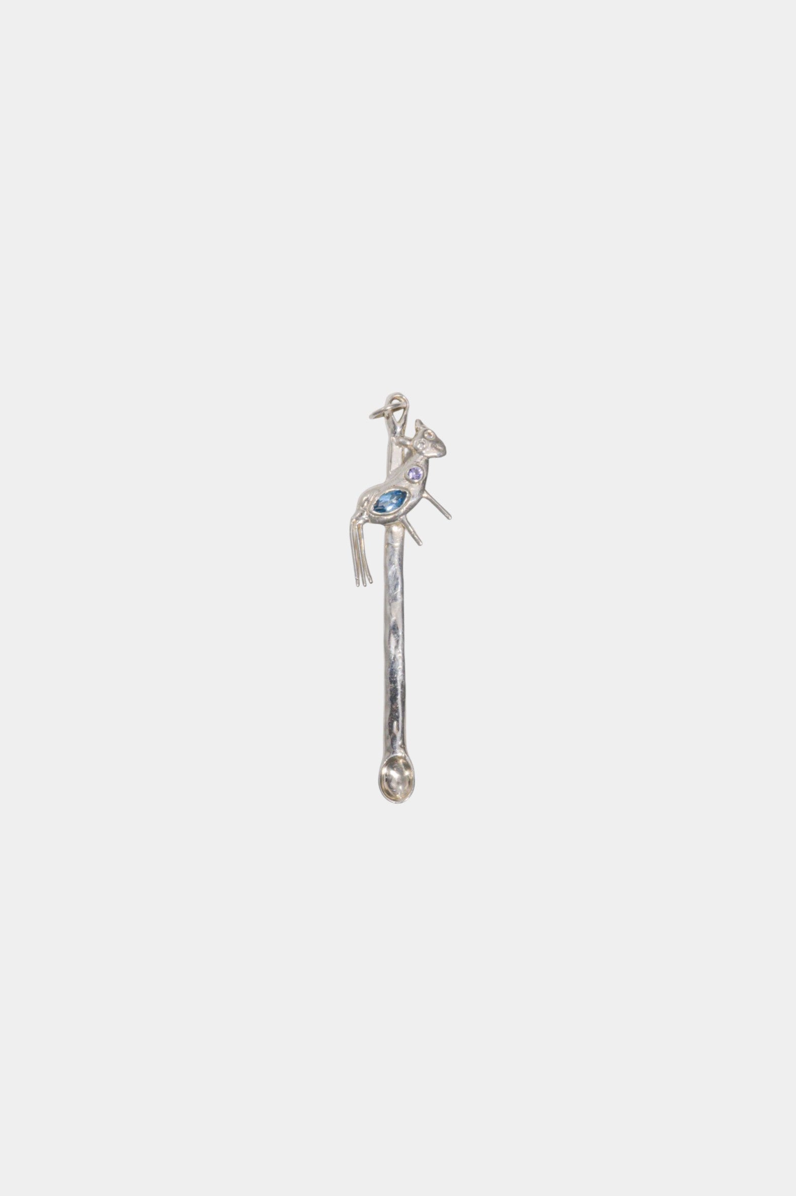 This spoon is made with white CZs, a sapphire and blue zircon and set in sterling silver.