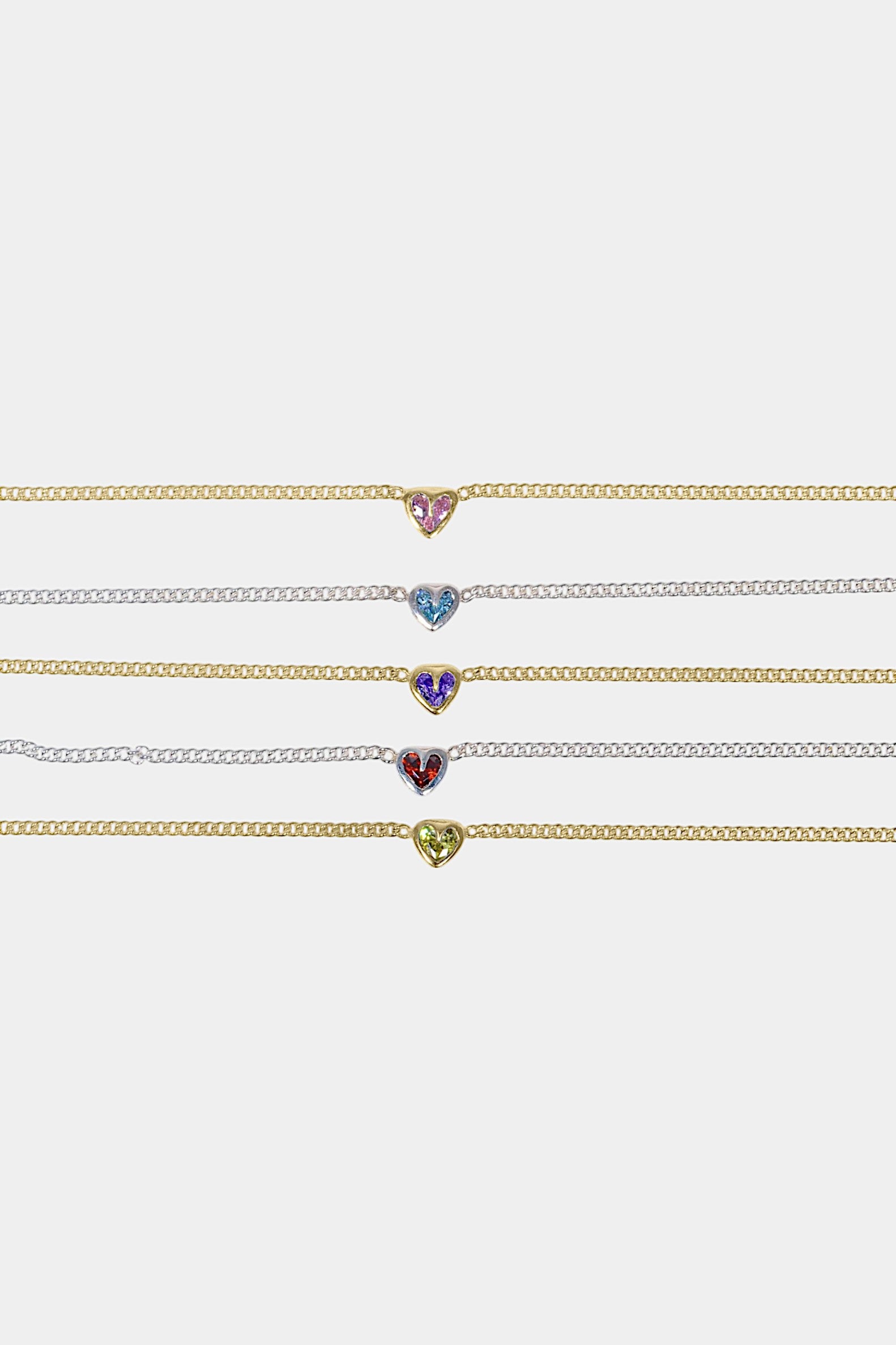 Tiny Heart Necklaces to add to your stack! Using our gorge 5mm heart cut CZs, available in pink, purple, aqua, lime and red.